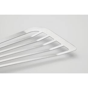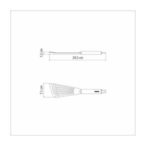 Em aço inoxidável, altamente durável, mantém as características , preservando a beleza, a higiene e a durabilidade do material. Acabamento em brilho. Espátula ideal para o preparo de alimentos frágeis como bife de peixe. Pode ser lavado, diariamente, na máquina de lavar louças.