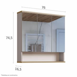 Material: MDF 18mm, Fita de borda em PVC, Dobradiça com amortecimento, Espelho aplicado na chapa com fita dupla face e silicone especial. Acompanha manual de montagem. COR: NUDE/CARVALHO