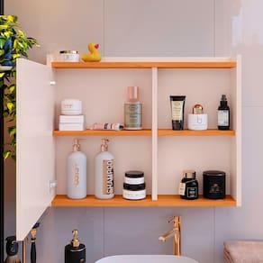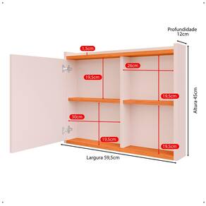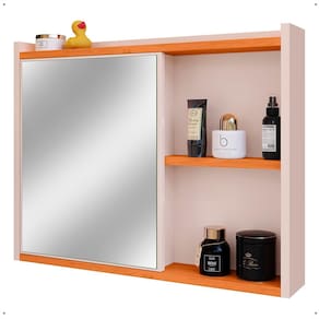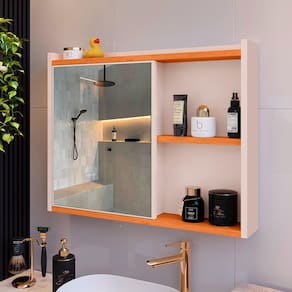 Espelheira Armário Banheiro Suspenso com Espelho 1 Porta Prateleira Organizadora Lavabo Luxo - Off White/Cinamomo