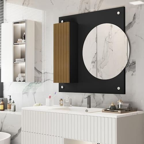 Espelheira de banheiro morfeu com porta preto / ripado - comprar moveis para sua casa Espelheira de banheiro morfeu. É embalado com caixa reforçada nas laterais para não ocorrer no transporte. Vendido pela comprar móveis em casa para deixar seu ambiente mais bonito e sofisticado procure nossas redes sociais e confira todos nossos produtos e qualidade de atendimento : Dimensões do produto montado Altura: 0,60 cm largura: 0,60 cm profundidade: 0,10 cm Caractersticas: Mdp 12mm Espelheira com porta e dobradiça metalica acompanha suporte de fixação Montagem: Este produto acompanha kit de montagem + manual de instrução detalhando passo a passo de como montar. A montagem do produto deverá ser feita por um , para que não ocorram danos no produto. não nos responsabilizamos por erro de montagem Atenção: a montagem não é oferecida pela comprar móveis em casa, a montagem do produto é por conta do comprador. Observações importantes: A é de 90 dias por defeitos de fabricação. Se no ato de recebimento do produto o cliente verificar que o produto não está em prefeito estado, principalmente por ocasião de transporte irregular, o cliente deverá recusar o recebimento do produto e entrar em contato para resolver o problema. Podem haver variações referentes à tonalidade das cores expressas nas fotos, por conta de fatores como iluminação e brilho de cada monitor/celular. Fotos meramente ilustrativas, não acompanham os produtos de decoração. Atenção, se atente a politica de troca/devolução da empresa. Marca: Não Informado Ean: 7795296046100