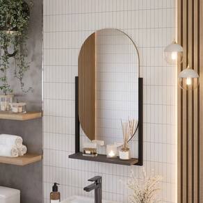 Espelheira para banheiro. Estrutura em metalon com design moderno e prateleira em MDF.