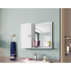 A Espelheira Gênova – Móveis Bechara, extremamente funcional, ela possui uma porta que possui uma prateleira interna criando 2 nichos com amplo espaço interno, além de possuir um amplo espelho fixado.