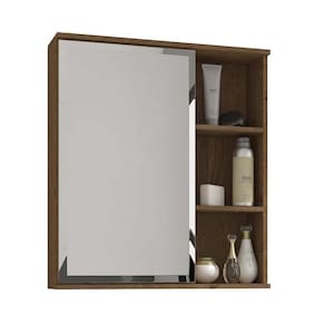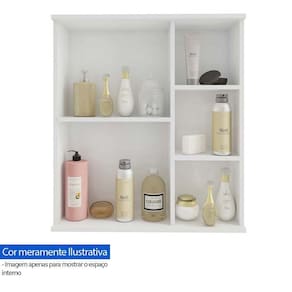 Espelheira para banheiro suspensa Treviso da MGM Móveis foi fabricada em MDF e possui uma porta com espelho e abertura de porta com fecho toque. Compõe também três prateleiras em MDF design moderno e amplo espaço.
