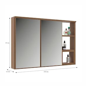 Fixada na parede, a espelheira máximus é elegante e possuí um acabamento impecável, com portas de abrir e espelhos grandes, e um nicho que deixa ainda mais bonita, é espaçosa, perfeita e indispensável para organizar seus itens de higiene pessoal. Feita de material resistente e de ótima qualidade, tendo a garantia de durabilidade que só produtos Belizze possuem. Acabamento da Porta: BP Acabamento da Prateleira: PVC Altura do Espelho: 67 cm Ambiente Principal: Banheiro codigo_ean: 7900288166609 Composição: 100% MDF Cor: Noce Cor do Produto: Noce Escala de Brilho: Fosco Espessura do Espelho: 3 mm Espessura do Material da Estrutura: 15 mm Fita Integrada: Sim Formato do Espelho: Retangular Itens Inclusos: 1 Espelheira e Manual de Instalação Largura do Espelho: 80 cm Linha ou Coleção: Máximus Manual de Montagem e Instalação: https://product-hub-prd.madeiramadeira.com.br/107730075/documents/5a0340ae-81ef-4eb2-9ddc-13faa324f8ee2983975566517492323835521.pdf Marca: Belizze Material da Porta: MDF Material da Prateleira: MDF Material Principal: MDF Necessita Montagem: Não Origem do Produto: Nacional Peso: 19,1 kg Peso Máximo por Prateleira: 30 kg Possui Espelho: 02 Espelhos com Tamanhos Iguais Possui iluminação: Não Possui Portas: 02 Possui Prateleiras: 05 Possui Toalheiro: Não Possui Tomadas: Não Recomendações de Uso, Manutenção e Limpeza: Retire o pó com uma flanela seca e depois utilize um pano macio umedecido com água. Não utilizar produtos químicos e abrasivos. Tipo de Dobradiça/Corrediça da Porta: Metálica Tipo de Fixação do Espelho: Fita Dupla Face Tipo de Porta: Abrir Tipo de Puxador da Porta: Não Possui