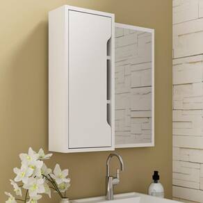Espelheira Para Banheiro 60 cm 1 Porta BN3648, ideal para inovar o seu banheiro com toque luxuoso e ao mesmo tempo refinado. Estrutura em MDP de 15mm, proporcionando maior durabilidade e resistência a peça, contando com acabamento em pintura UV (semi - brilho). Composta por 1 porta com frente usinada e dobradiças metálicas, espelho com design retangular e 3 prateleiras internas para armazenar itens, prateleira suporta 3kg cada. Montagem reversível, podendo ser montado para ambos os lados. Perfeita para deixar seu ambiente produtivo, proporcionando uma ambientação elegante e moderna. Este móvel chegará na sua casa separado em 1 volume.