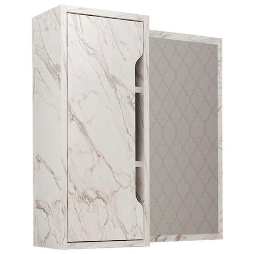 Espelheira Para Banheiro 60 Cm 1 Porta Bn3648 Marmore Branco Tecno Mobili Marmore Branco
