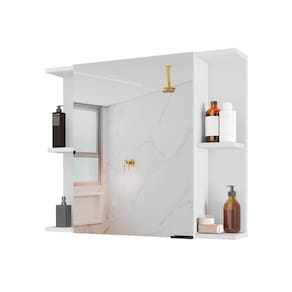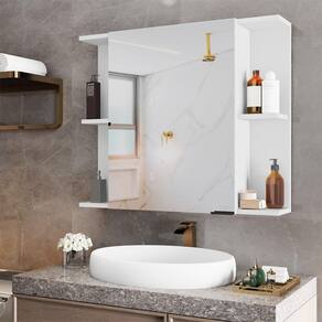 AS IMAGENS SÃO MERAMENTE ILUSTRATIVAS E PODEM SOFRER VARIAÇÕES DE COR E PEQUENOS DETALHES DE ACORDO COM O SEU MONITOR, ILUMINAÇÃO DO AMBIENTE E ATÉ MESMO A SUA PERCEPÇÃO VISUAL.Espelheira para Banheiro ArmÃrio Suspenso Nilo Branco