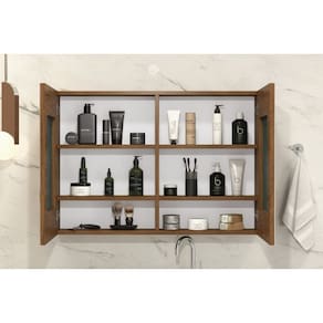 Espelheira Life possui prateleiras internas que facilitam organização, conta com dobradiças reforçadas com sistema Slow que garante maior estabilidade e amortecimento ao fechamento de porta. Isso tudo além de deixar o ambiente mais confortável para o uso.