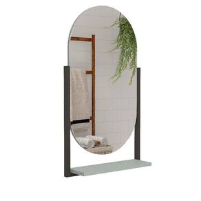 Formato oval com estrutura em metalon 1 prateleira MDF Espelheira com espelho de 3mm