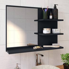 A Espelheira Astra é um produto essencial para quem deseja manter o banheiro sempre bonito e organizado. Ela conta com um design moderno e minimalista, oferecendo praticidade no dia-a-dia. Ela dispõe de prateleiras laterais e inferior, podendo ser utilizada para acomodar objetos de uso pessoal e decorativo. Também conta com um espelho de ótima qualidade, proporcionando uma imagem nítida e clara, facilitando a realização de ações cotidianas, como: escovar os dentes, fazer a barba, se maquiar e muito mais. A Espelheira Astra é o produto ideal para deixar seu ambiente ainda mais funcional e sofisticado.