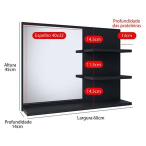 Dimensões do produto montado: Altura: 45 cm Largura: 60 cm Profundidade: 14 cm