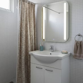 O Espelho Crys combina tecnologia e design para transformar seu ambiente. Com iluminação LED 6000K e sistema touch, oferece luz branca intensa, ideal para maquiagem e cuidados pessoais. Seu design moderno, com cantos arredondados e acabamento refinado, adiciona sofisticação e funcionalidade a banheiros, quartos ou lavabos, valorizando cada detalhe do espaço. Acompanha Lâmpada: 01 Altura do Espelho: 70 cm Ambiente Principal: Banheiro codigo_ean: 7900288278319 Coleção: Crys Composição: 80% Espelho, 5% Fitas de Led, 5%EVA, 5%Suporte,5% Botão Touch Cor: espelho lapidado Cor do Produto: Espelho Lapidado Cor Interna: Branco Escala de Brilho: Fosco Espessura do Espelho: 3 mm Espessura do Material da Estrutura: 3 mm Formato do Espelho: Retangular Formato Espelheira: Retangular Itens Inclusos: 1 Espelheira e Kit Instalação Largura do Espelho: 50 cm Linha ou Coleção: Crys Manual de Montagem e Instalação: https://product-hub-prd.madeiramadeira.com.br/534166141/documents/b03d1bc8-bdb7-45ac-991a-01f35b90707c3281110648917609802007042.pdf Marca: Reduna Material Principal: Espelho Necessita Montagem: Não Origem do Produto: Nacional Peso: 2,8 kg Possui Espelho: 01 Possui iluminação: Sim Possui Portas: Não Possui Prateleiras: Não Possui Toalheiro: Não Possui Tomadas: Sim Recomendações de Uso, Manutenção e Limpeza: Limpar com pano macio e úmido, sem uso de produtos abrasivos Tipo de Fixação do Espelho: Parafusos Tipo de Lâmpada: Led undefined: 112908986 Voltagem da Tomada: Bivolt
