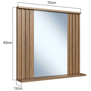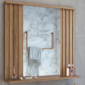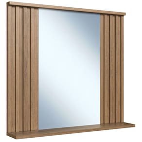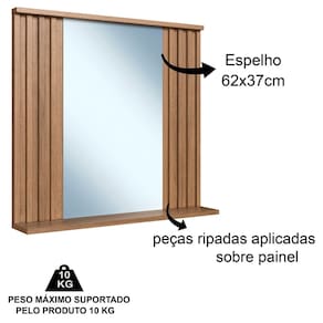 Características adicionais: acompanha espelho e prateleira, peças ripadas aplicadas no painel