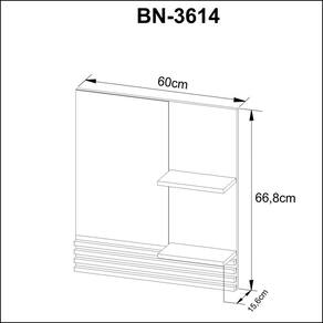 Quando falamos de banheiro pensamos em bem-estar. Pois o banheiro é onde a gente recarrega nossa energia, idealiza nossos sonhos e realiza toda a manutenção necessária para uma saúde física e mental melhor. Com design prático e funcional, o móvel entrega ao ambiente toques de modernidade e elegância. Multifuncional, acondiciona produtos de higiene e beleza como porta escova e artigos de limpeza entre tantos outros objetos de uso pessoal. Espelheira Suspensa para Banheiro BN3614. Possui espelho e duas prateleiras, detalhe em ripado na base. Estrutura em MDP e acabamento em BP e parte pintura UV. Imagem meramente ilustrativa. A decoração do ambiente não acompanha o produto, produto é entregue desmontado, novo, acompanha procedência garantida, manual de montagem e ferragem. Produto: Espelheira Suspensa para Banheiro 60cm com 2 Prateleiras BN3614 Cor: Amêndoa/Mármore Branco Acabamento: Pintura UV Material: MDP Altura (cm): 66,8 Largura (cm): 60 Profundidade (cm): 15,6 Peso (kg): 7,3 Peso Suportado: 3kg prateleira. Prateleiras: 2 Gavetas: 0 Portas: 0 Puxador: 0 - Material: 0 Rodízio: 0 Garantia: A Tecnomobili tem o compromisso permanente com a qualidade de seus produtos. Nosso período de garantia é 03 (três) meses contra defeitos de fabricação. Limpeza e Conservação: Para uma limpeza mais efetiva, utilizar apenas pano macio umedecido e sabão neutro. Não utilizar produtos abrasivos. Necessita Montagem: Sim. Aconselhamos que a montagem seja feita por um . O produto será entregue desmontado. Não disponibilizamos montagem. Após montado não expor o móvel a fonte de calor ou umidade. Imagem meramente ilustrativa. A decoração do ambiente não acompanha o produto. produto lacrado acompanhado de procedência garantida. Referência: BN3614.0002 Marca: Não Informado