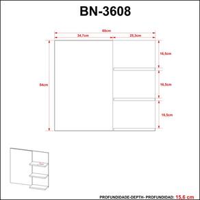 Quando falamos de banheiro pensamos em bem-estar. Pois o banheiro é onde a gente recarrega nossa energia, idealiza nossos sonhos e realiza toda a manutenção necessária para uma saúde física e mental melhor. Com design prático e funcional, o móvel entrega ao ambiente toques de modernidade e elegância. Multifuncional, acondiciona produtos de higiene e beleza como porta escova, papel higiênico, toalhas, artigos de limpeza entre tantos outros objetos de uso pessoal. Espelheira Suspensa para Banheiro BN3608. Possui espelho e três prateleiras. Estrutura em MDP e acabamento em pintura UV. Montagem flex reversível. Imagem meramente ilustrativa. A decoração do ambiente não acompanha o produto, produto é entregue desmontado, novo, acompanha procedência garantida, manual de montagem e ferragem. Produto: Espelheira Suspensa para Banheiro 60cm com 3 Prateleiras BN3608 Cor: Branco Acabamento: Pintura UV Material: MDP Altura (cm): 54 Largura (cm): 60 Profundidade (cm): 15,6 Peso (kg): 6,2 Peso Suportado: 3kg cada prateleira. Prateleiras: 3 Gavetas: 0 Portas: 0 Puxador: 0 - Material: 0 Rodízio: 0 Garantia: A Tecnomobili tem o compromisso permanente com a qualidade de seus produtos. Nosso período de garantia é 03 (três) meses contra defeitos de fabricação. Limpeza e Conservação: Para uma limpeza mais efetiva, utilizar apenas pano macio umedecido e sabão neutro. Não utilizar produtos abrasivos. Necessita Montagem: Sim. Aconselhamos que a montagem seja feita por um . O produto será entregue desmontado. Não disponibilizamos montagem. Após montado não expor o móvel a fonte de calor ou umidade. Imagem meramente ilustrativa. A decoração do ambiente não acompanha o produto. produto lacrado acompanhado de procedência garantida. Referência: BN3608.0001 Marca: Não Informado