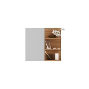 A Espelheira Vitalle foi feita pra compor um banheiro moderno e organizado, com espelho amplo e nichos laterais abertos para acomodar perfumes, higiene e decoração. Não possui porta (prateleiras ficam expostas), deixando o visual leve e prático para o dia a dia.
