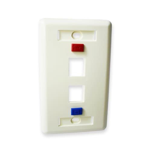- Injetado em Termoplástico de alto impacto. - Possui excelente acabamento, design e indicada para instalações que já possuam infra-estrutura embutidas em parede. - Compatível com as caixas embutidas e de sobreposição nos padrões 4x2. - Possuem encaixe para instalar 2 RJ `s . - Acompanha parafusos de fixação, ícones de identificação.