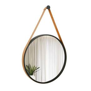 Espelho decorativo Adnet Preto com alça de courino Caramelo 50 cm diâmetro. Tem um design moderno, surpreende através da sua simplicidade da união do espelho, alumínio e couro ecológico. Surge um ícone, que se encaixa em diferentes estilos de decoração. - modelo: tipo adnet com alça - material: espelho de vidro, alumínio e alça couro ecológico - pintura: eletrostática microtexturizada - espessura do espelho: 3/4 mm - dimensões da peça: 50 cm diâmetro - altura montado: 75 cm aproximadamente - profundidade: 4 cm - acompanha pendurador, parafuso e bucha Ean: 7908068001805