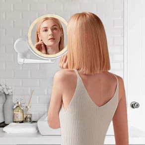 Otimize o espaço da sua penteadeira com nosso espelho, pode ser fixado na parede com braço retrátil. Posicione-a sem esforço em qualquer ângulo para aplicação perfeita da maquiagem ou penteado e dobre-a de volta contra a parede para economizar espaço. O espelho giratório chegou para facilitar a sua vida na hora de fazer, seu cabelo e a sua maquiagem.