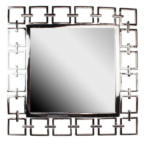Espelho emoldurado quadrado Benjara Modern Style Metal Openwork, prateado