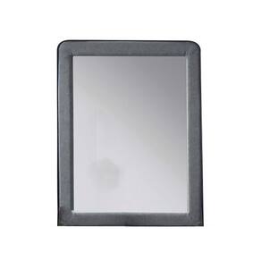 Espelho de moldura de madeira estofado em tecido Benjara com acabamento embutido, cinza e prata