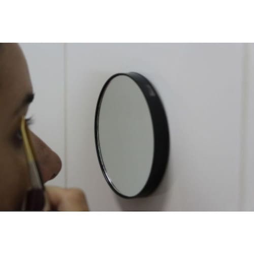 Espelho de aumento 5x com ventosa para fixação, ideal para colocar no banheiro ou onde você desejar.