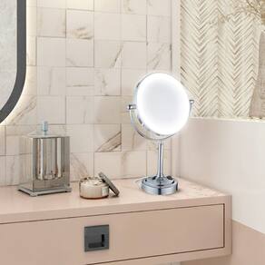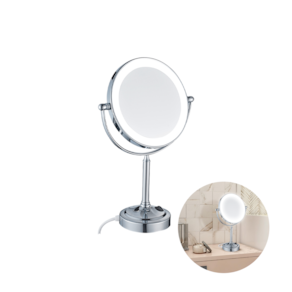 Modelo: E6670 L8 Tipo: Espelho de Bancada com Luz Acabamento: Cromado Material: Latão de alta qualidade Espelho com aumento de imagem: 5x Iluminação: LED integrada