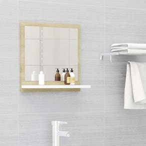 -?Design elegante?: O espelho de banheiro vidaXL aumenta o apelo estético do seu banheiro com seu estilo contemporâneo, com acabamento em branco e carvalho sonoma