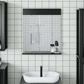 - A entrega contém: Espelho de banheiro com montagem de prateleira necessária: