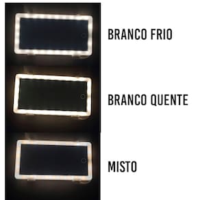 O espelho conta com inumeros leds, nas cores branco frio, branco quente e misto!