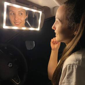 Este é um espelho pode ser preso em seu quebra-sol e ser utilizado para ajudar em maquiagens, luz reserva e selfies!