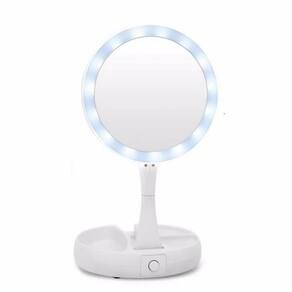 Espelho De Luz Led Dobravel Aumenta 10x Maquiagem Dupla Face Por ser dobrável, leve e compacto, ocupa pouco espaço, sendo ideal Para guardar na bolsa, na mala de viagem e até mesmo em casa e Estende-se para um máximo de 29 cm de altura