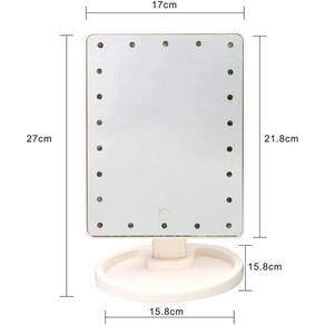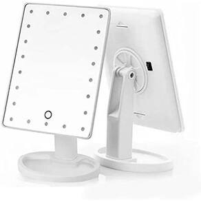 Espelho de maquiagem com 16 leds touch usb botão touch Espelho de mesa articulável para makes com 16 leds botão touch Espelho de mesa giratório, com botão smart touch, possui base para guardar seus acessórios, botão com liga/desliga, cabo usb e compartimento para 4 pilhas. Ideal para maquiagem, limpeza de pele, colocação de , iluminação perfeita para seus momentos de make e skin care. Através da iluminação via 16 lâmpadas led, a pele fica muito mais iluminada e melhor definida. O mesmo gira 180º graus para que você obtenha um ângulo perfeito de visualização de seu rosto. O espelho funciona com pilha, e também conectado no cabo usb não acompanha fonte . Alimentação: 4 pilhas aa não inclusas ou cabo usb. Dimensões do espelho: 22x16cm Peso: 385g Composição do material: polipropileno Sistema: 180º graus. Itens inclusos: 1 espelho 1suporte 1cabo usb Marca: Não Informado Ean: 7893095628784