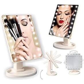 Espelho de maquiagem com 16 leds touch usb botão touch Espelho de mesa articulável para makes com 16 leds botão touch Espelho de mesa giratório, com botão smart touch, possui base para guardar seus acessórios, botão com liga/desliga, cabo usb e compartimento para 4 pilhas. Ideal para maquiagem, limpeza de pele, colocação de , iluminação perfeita para seus momentos de make e skin care. Através da iluminação via 16 lâmpadas led, a pele fica muito mais iluminada e melhor definida. O mesmo gira 180º graus para que você obtenha um ângulo perfeito de visualização de seu rosto. O espelho funciona com pilha, e também conectado no cabo usb não acompanha fonte . Alimentação: 4 pilhas aa não inclusas ou cabo usb. Dimensões do espelho: 22x16cm Peso: 385g Composição do material: polipropileno Sistema: 180º graus. Itens inclusos: 1 espelho 1suporte 1cabo usb Marca: Não Informado