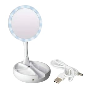 Espelho LED Dobrável Maquiagem Aumenta 10x Portátil