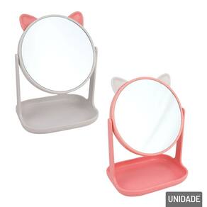 Espelho de Mesa 23x16cm com Base Porta Objeto O Espelho de Mesa Color é a combinação perfeita de funcionalidade e estilo. Com um design encantador, inspirado no formato de um gatinho, esse espelho traz um toque lúdico e moderno para o seu espaço, ao mesmo tempo que oferece praticidade e organização. Ideal para quem busca um espelho de alta qualidade com um toque divertido e um sistema inteligente para armazenar pequenos objetos.\nCom dimensões de 23x16cm, este espelho oferece uma área de reflexão ideal para retoques de maquiagem, cuidados com a pele ou penteados. O tamanho compacto também facilita a colocação em diversas superfícies, como mesas, penteadeiras ou cômodas.\nA base do espelho é projetada para oferecer mais do que apenas suporte;\nela serve também como um porta objetos. Com compartimentos para armazenar pequenos itens como maquiagens, pincéis, acessórios ou outros objetos de uso diário, essa base mantém sua mesa ou penteadeira organizada e sem bagunça.\nDisponível em cores .\nEspecificações:\nMarca : TINGS\nTipo de material : Plástico, Vidro\nCores ou Estampa : Color\nDimensões do Produto : 23 X 16 X 11,5 CM\nDimensões da Embalagem : 18 X 16 X 4,5 CM\nPeso Bruto (Gramas) : 0.233