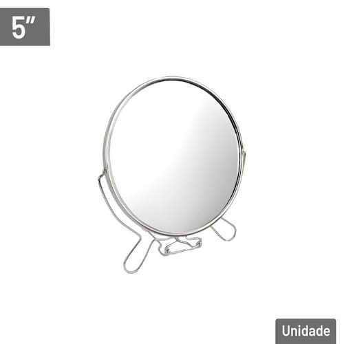 Espelho de Mesa Dupla Face 6x5cm Redondo Descubra a praticidade e o estilo do nosso Espelho de Mesa Dupla Face Redondo, com 6x5cm. Com um design compacto e elegante, este espelho é perfeito para qualquer ambiente. Ele possui uma face normal e uma face com aumento, ideal para detalhes de maquiagem ou cuidados pessoais.\nCom um diâmetro de 5 polegadas, é fácil de manusear e transportar, tornando-se um acessório indispensável em sua rotina de beleza. Adicione um toque de sofisticação ao seu espaço e aproveite a versatilidade deste espelho incrível!\nEspecificações:\nMarca : MEGAGIFT\nTipo de material : Vidro, Metal\nCores ou Estampa : Prata\nDimensões do Produto : 6 X 5 X 1 CM\nDimensões da Embalagem : 5,5 X 6,5 X 1 CM\nPeso Bruto (Gramas) : 0.126 Marca: Não Informado