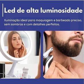 Além de ter um design elegante, este espelho de maquiagem com dupla face é iluminado com LEDs, sendo muito prático.