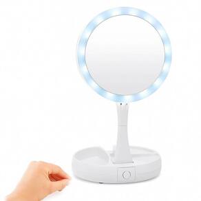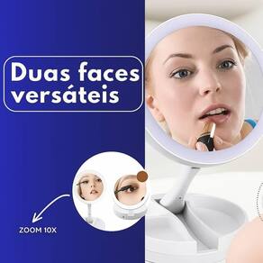 Por ser dobrável e acompanhar em sua base um organizador de maquiagem, leve e compacto, ocupa pouco espaço, sendo ideal para guardar na bolsa, na mala de viagem e até mesmo em casa.