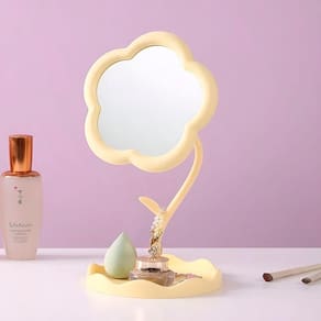 Adicione um toque de charme e elegância à sua penteadeira ou mesa com nosso encantador Espelho de Mesa para Maquiagem em formato de flor! Ele se destaca como um item decorativo único, trazendo leveza e um toque floral ao seu ambiente.