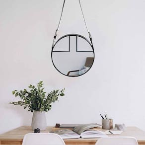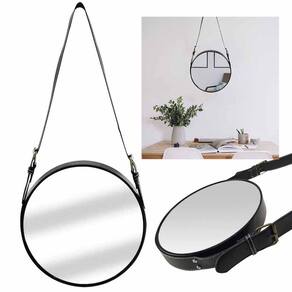 Espelho De Parede Redondo Vintage Alça Regulavel Sintetica Decoraçao Banheiro Cozinha Quarto Sala