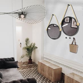 O espelho Adnet foi criado na década de 1950 pelo design Jacques Adnet, que decidiu unir diferentes materiais, como metais e couro, para criar o produto que hoje é uma das peças mais emblemáticas da decoração moderna e contemporânea Moldura em Alumínio que proporciona leveza ao produto, e permite acabamento em pintura epóxi-pó não enferruja . Espelhos que não distorcem a imagem, fabricados através do processo cooper free, livres de metais pesados, que não causa prejuízos a saúde e ao meio ambiente. Alça de corda de sisal totalmente natural, que não agride o meio ambiente e contribui com a natureza Alça de corda de polipropileno multifilamento de alta qualidade resistente adversidades Acompanha Gancho/Pendurador de alumínio com acabamento em pintura epóxi-pó não enferruja . Incluso parafuso e bucha para instalação. Utilize nosso vídeo de montagem.