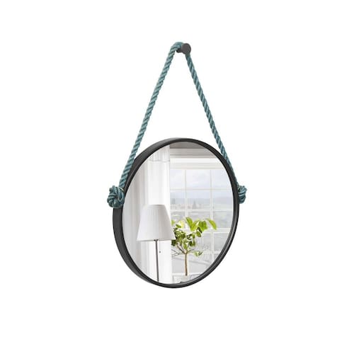Espelho Decorativo Adnet Preto Alça Sisal Blue 40 Cm