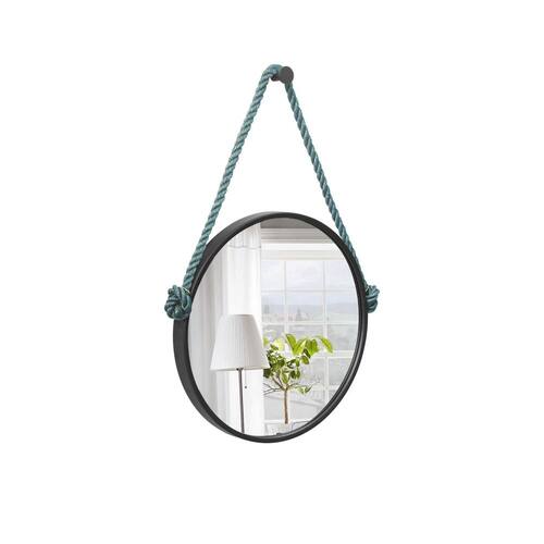 Espelho Decorativo Adnet Preto Alça Sisal Blue 50 Cm Redondo