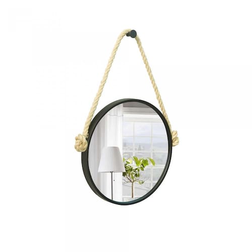 Espelho Decorativo Adnet Preto Alça Sisal Natural 40Cm