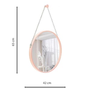 Espelho Decorativo Adnet Rosa Alça Corrente Cromada 40cm RedondoMoldura em Alumínio que proporciona leveza ao produto, acabamento em pintura epóxi-pó não enferruja .Espelhos que não distorcem a imagem, fabricados através do processo cooper free, livre de metais pesados, que não causa prejuízos a saúde e ao meio ambiente. Alça em Corrente com banho de Níquel, acabamento brilhante Cromada de alta resistência. Acabamento em Revestimento de TNT para assegurar a conservação do produto. Acompanha Gancho/Pendurador de alumínio com acabamento em pintura epóxi-pó não enferruja . Incluso parafuso e bucha para instalação. Utilize nosso vídeo de montagem.