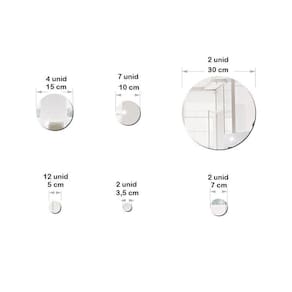 TAMANHO: 02 x Peças Circulares de 30 cm 04 x Peças Circulares de 15 cm 07 x Peças Circulares de 10 cm 02 x Peças Circulares de 7 cm 12 x Peças Circulares de 5 cm 02 x Peças Circulares de 3,5 cm
