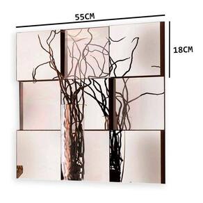 espelho de Vidro Decorativo 55 x 55 CM LiverpoolQuer dar uma nova cara para o seu lar Pois então você deveria escutar a dica de dezenas de arquitetos, que sempre apostam em espelhos para dar mais amplitude ao espaço e decorar qualquer cômodo com estilo. O Espelho Liverpool. Essa é a opção perfeita para encher o espaço com charme e bom gosto. DimensõesAltura: 55 cmLargura: 55 cmProfundidade: 2 cmCaracterísticasPeso: 5 kgCor do Produto: Lateral preta, frente espelhoItens Inclusos: 9 peças que completam o painel. Cada peça tem 18cmX18cm5 com 2cm de profundidade4 com 6mm de profundidadeVocê pode montar o painel do jeito que preferir, não sendo necessariamente igual as imagens. São 9 peças para montar com a sua criatividade e bom gosto.Atrás de cada peça acompanha fitas dupla face para você colar na parede, não precisando fazer furos e nem sujeira nela, deixando a aplicação muito mais fácil e simples. As fitas dupla face são o suficiente para a fixação na parede, pois são muito resistentes e a fixação é bem forte.Material Principal: VidroOrigem do Produto: NacionalAcabamento: PinturaAmbiente Principal: Sala de Jantar, Quarto, Sala, Cozinha.Recomendações de Uso, Manutenção e Limpeza: Limpeza com pano macio e levemente umedecido. Não utilizar solventes a base e de inflamáveis. Não utilizar produtos abrasivos.