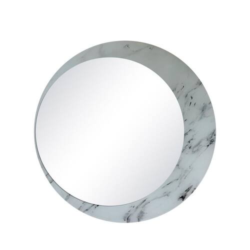 Espelho Decorativo Luna Mármore Branco 60cm Redondo Lateral Este espelho é uma excelente opção para você que quer dar um toque moderno e diferente na sua decoração. Esta peça possui formato redondo e uma pedra de mármore de tonalidade preta acoplada que ao ser instalada traz sobriedade, beleza e sofisticação ao ambiente Ean: 7908068042556