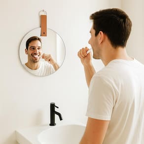 Espelho Decorativo Parede Redondo 28Cm Alça Sintética